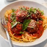 This classic Baked Italian Meatballs recipe features tender, flavorful meatballs made with lean ground beef, Parmesan cheese, and Italian seasoning. Baked to perfection and optionally simmered in pasta sauce, these meatballs pair wonderfully with your favorite pasta or zucchini noodles for a nourishing, high-protein meal perfect for family dinners or meal prep.