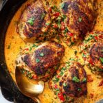 This Broccoli Stuffed Chicken Breast recipe is a supremely juicy and tender dish packed with a flavorful, cheesy broccoli filling seasoned with garlic, paprika, and herbs. The chicken is pounded thin, stuffed with a creamy cheddar and cream cheese mixture, seared to a golden brown, then baked in a flavorful chicken broth for moistness and a delicious pan sauce. Perfect for a hearty family meal served alongside mashed potatoes or your favorite sides.