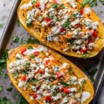 - Prepare the Spaghetti Squash: Preheat your oven to 400 degrees Fahrenheit. Slice the spaghetti squash in half lengthwise and scoop out the seeds. Place the halves cut-side down on a baking sheet and roast for 40-45 minutes until tender and easily shredded with a fork.