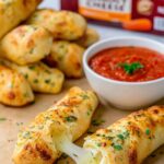 - Brush and Serve: Remove the breadsticks from the oven and immediately brush the tops generously with the garlic butter mixture. Serve hot with marinara sauce for dipping.