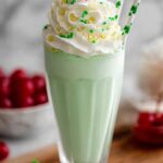 - Serve and garnish: Top each shake with whipped cream, green sugar or sprinkles, and a maraschino cherry if using. Serve immediately and enjoy your festive treat!