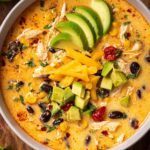 Creamy Chicken Enchilada Soup is a comforting Tex-Mex dish featuring shredded chicken, black beans, corn, and green chiles simmered in a flavorful blend of chicken broth, enchilada sauce, and fire-roasted tomatoes. Enriched with cream cheese, heavy cream, and melted cheddar cheese, this hearty soup offers a creamy texture and rich flavor perfect for a quick weeknight meal.