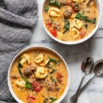 This warm and comforting Slow Cooker Creamy Tortellini Soup is packed with flavorful Italian sausage, tender cheese tortellini, fresh baby spinach, and a rich creamy broth made with beef broth, diced tomatoes, and Parmesan cheese. Perfect for an easy, hearty meal that cooks slowly to develop deep flavors.