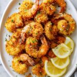 This Crispy and Juicy Air Fryer Shrimp recipe features jumbo shrimp coated in a flavorful blend of Italian seasoned whole wheat breadcrumbs and Parmesan cheese, air fried to golden perfection. Quick and healthy, it’s perfect for a light dinner or appetizer, garnished with fresh lemon and parsley for a burst of freshness.