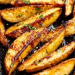 Crispy and flavorful baked potato wedges seasoned with garlic, onion powder, smoked paprika, and salt. These wedges are easy to make and perfect as a side dish or snack, with an optional sprinkle of vegan parmesan for extra taste.