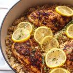 A flavorful and easy one pot lemon herb chicken and rice dish, featuring tender chicken breasts cooked in butter with Italian seasoning and lemon juice, simmered to perfection with white rice in chicken broth. Ready in just 30 minutes, this recipe is perfect for a quick and delicious family dinner.