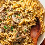 - This stroganoff can be served over other types of noodles, rice, or creamy polenta for versatility.