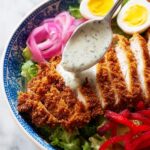 A quick and flavorful chicken cutlet salad featuring tender chicken cutlets, quick pickled red onions, fresh veggies, and a creamy homemade ranch dressing. This tangy main course salad combines a variety of textures and flavors for a satisfying and balanced meal.