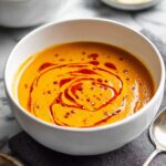 Easy Red Lentil Soup is a comforting, nourishing dish featuring tender red lentils and vegetables blended into a smooth, flavorful soup, finished with a warm spiced Aleppo pepper butter and served with lemon wedges for brightness.