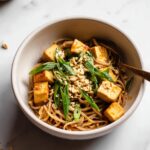 This Sesame Ramen Noodles with Crispy Tofu recipe is a quick and flavorful vegan dish that combines crispy pan-fried tofu with tender ramen noodles tossed in a rich, nutty sesame sauce. Enhanced with garlic, ginger, and a touch of sriracha for heat, this dish is garnished with crushed peanuts, sesame seeds, and fresh green onions for added texture and freshness. Perfect for a satisfying and easy-to-make meal.
