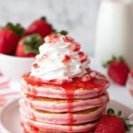 - Serve: Serve the pancakes immediately with whipped cream, fresh strawberries, and maple or strawberry syrup. Enjoy fresh, or refrigerate for up to 5 days or freeze in Ziploc bags for quick breakfasts later.
